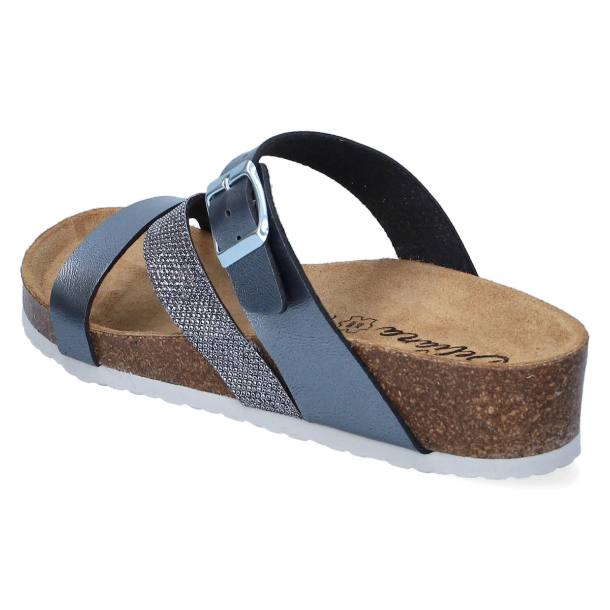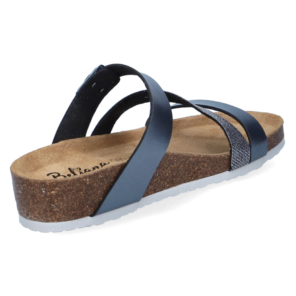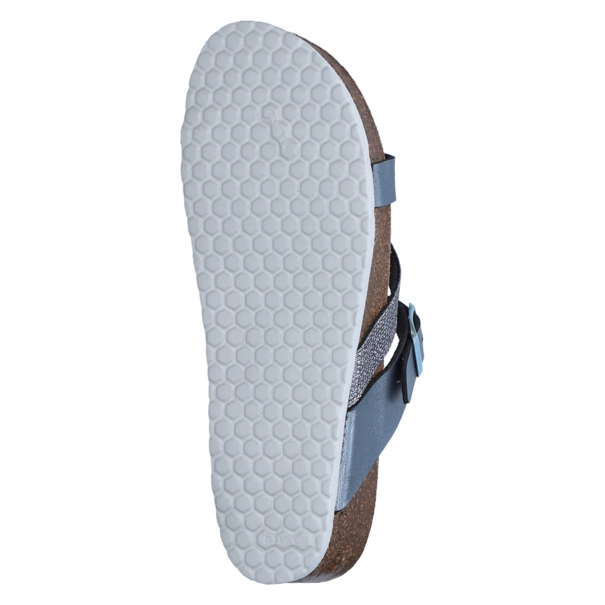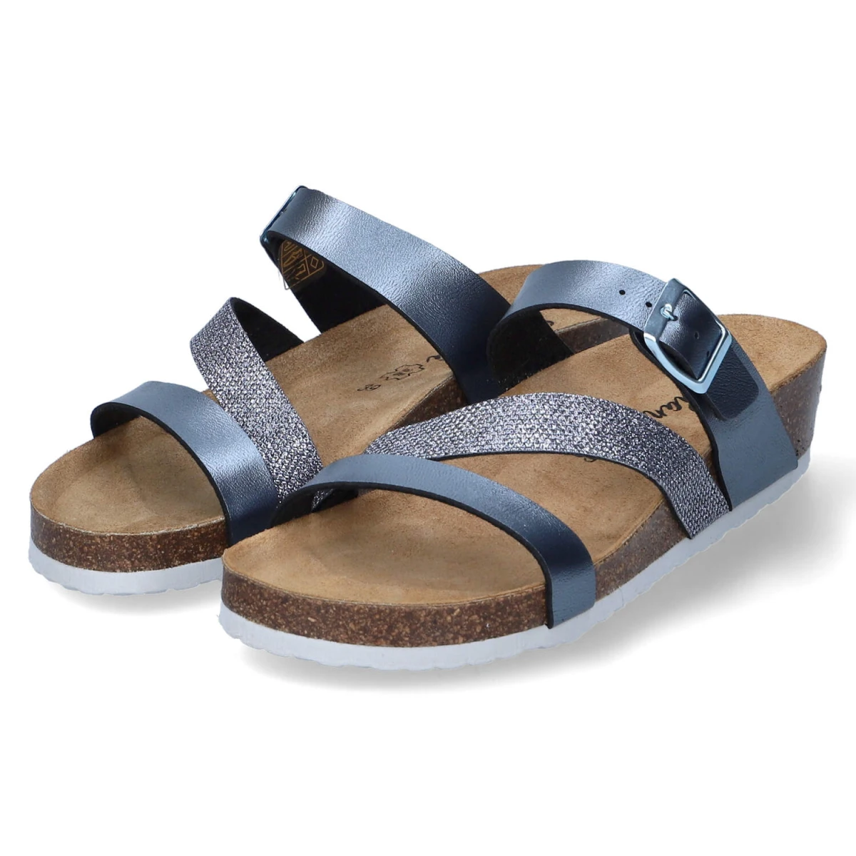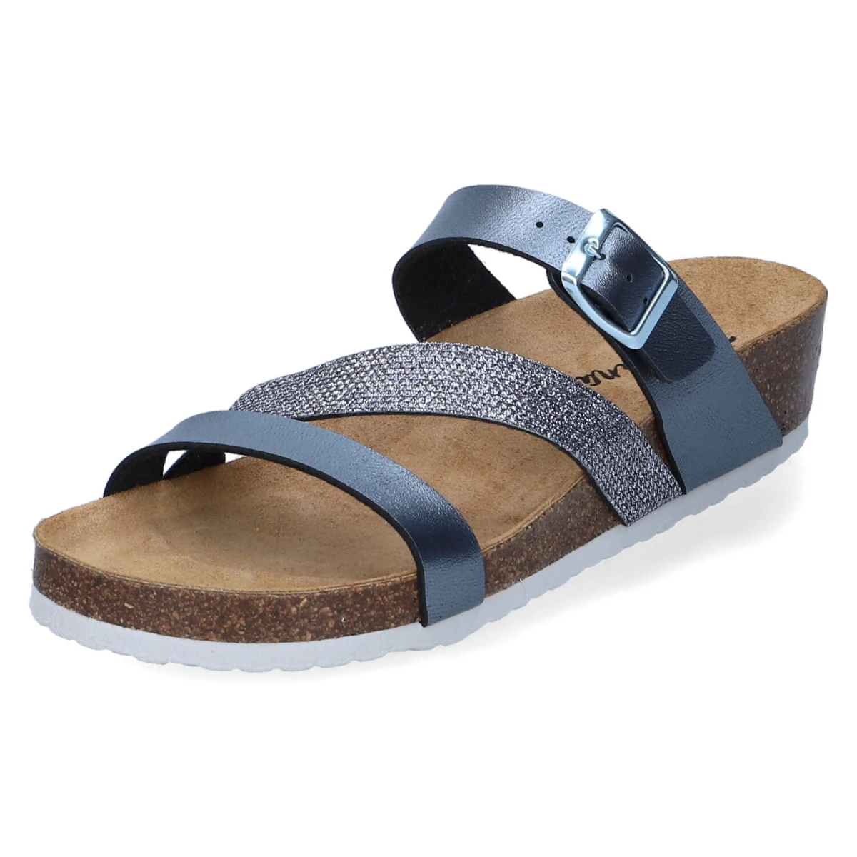 Diese Pantoletten von Beliana vereinen zeitgemäße Ästhetik mit Komfortdetails für lange Tage. Das graue Metallic-Muster bringt Licht ins Outfit, die glitzernden Highlights setzen fein dosierte Effekte. Drei schmale Riemen mit verstellbarer Schnalle stabilisieren den Fuß, die runde Spitze begünstigt ein angenehmes Zehengefühl. Eine flexible Profilsohle unterstützt natürlichen Abrollkomfort, das relaxt leichte Design wirkt angenehm unbeschwert. Das gepolsterte, anatomisch vorgeformte Korkfußbett mit Lederbezug steigert den Wohlfühlfaktor. Das Obermaterial aus Kunstleder in modern designter Synthetik-Anmutung ist pflegeleicht, die Passform fällt normal aus. Modetipp: Zu einer Satin-Slip-Skirt-Komposition und Stricktop kombinieren, ein grauer Blazer rundet den urbanen Chic ab.