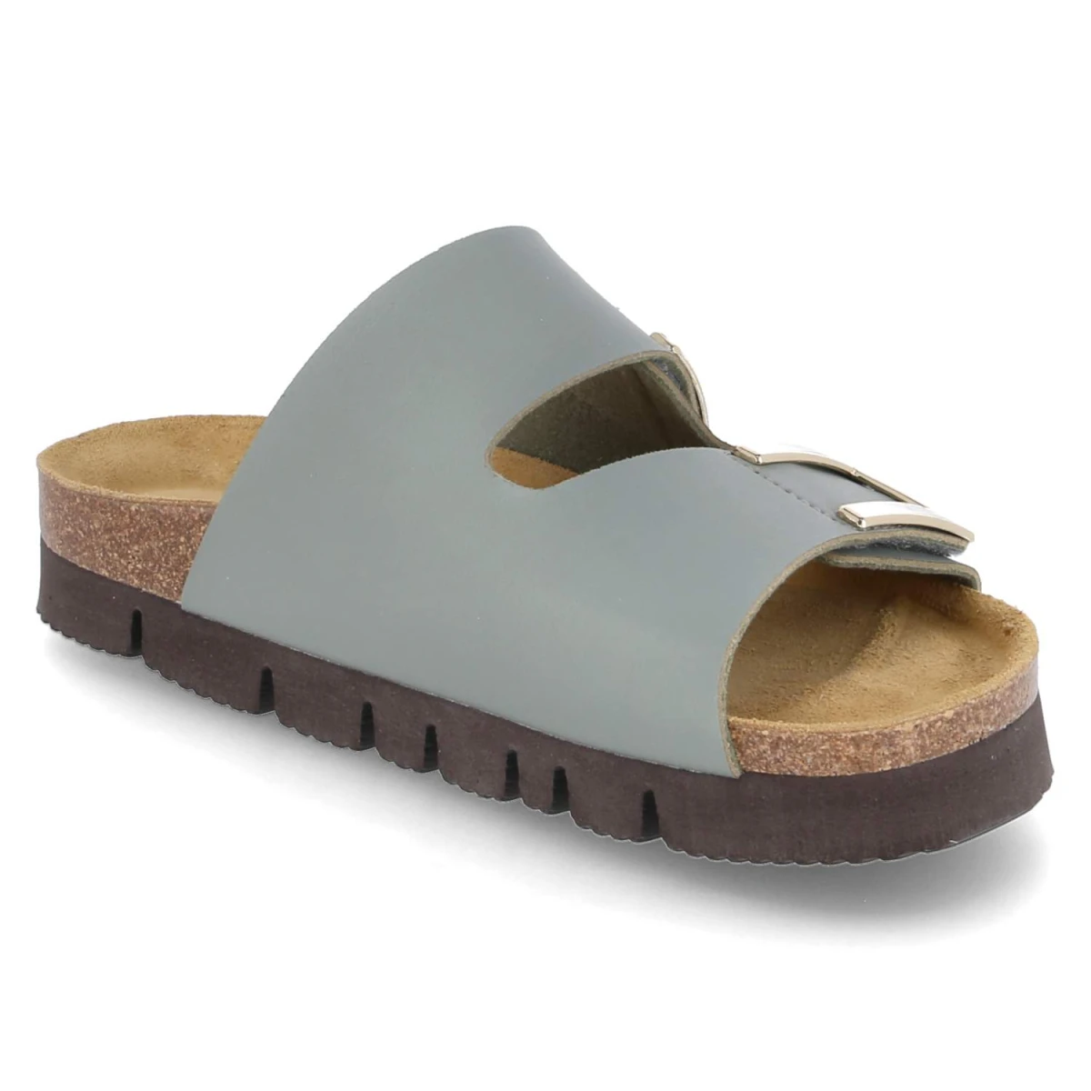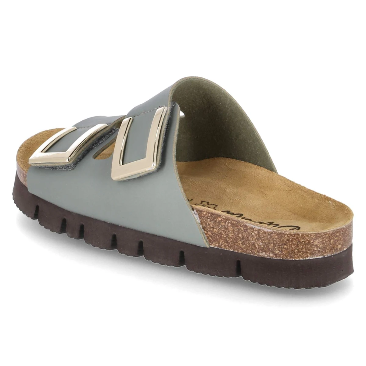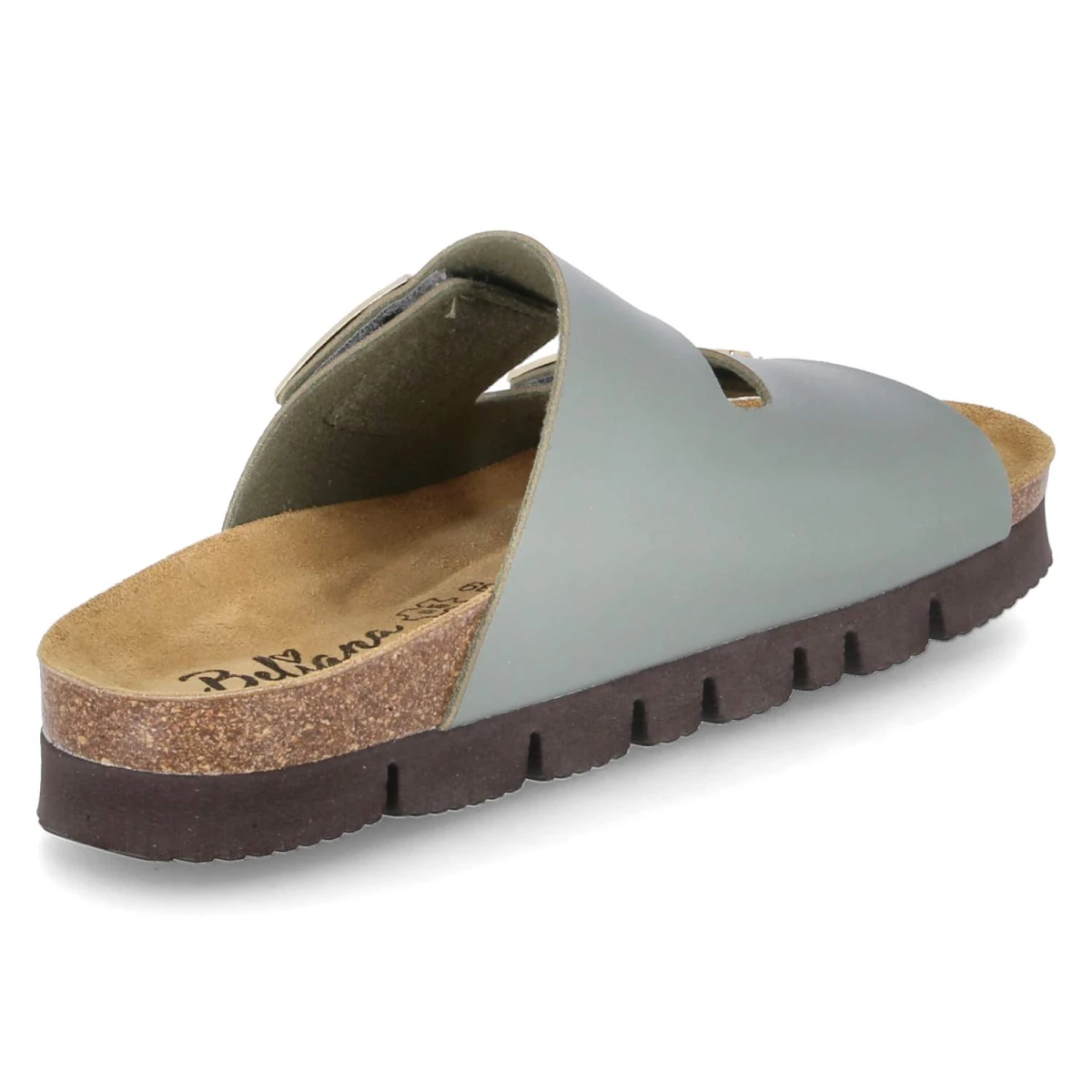 Beliana präsentiert eine Pantolette, die Alltagstauglichkeit und Stil mühelos vereint. Das 3 cm Plateau sorgt für ein angenehmes Laufgefühl, das gepolsterte Fußbett und die Lederdecksohle erhöhen den Tragekomfort spürbar. Pflegeleichtes Kunstleder in Grün bildet die moderne Basis, während die praktischen Klettverschlüsse für einen individuell einstellbaren Sitz stehen. Die goldfarbenen Zierelemente auf den Riemen setzen dezente Highlights und betonen die wertige Optik. Die offene Schuhspitze rundet das luftige Design ab und die Passform fällt normal aus. Modetipp: Ein monochromer Look in Olivtönen, ergänzt um einen leichten Blazer und goldene Creolen, hebt die elegante Note hervor und lässt die Pantoletten als Statement wirken.