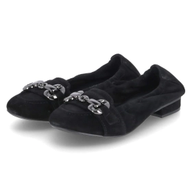 - Im Businessbereich sind vor allem Ballerinas aus Leder in schwarzen und dunkelblauen Tönen am gängigsten. Mit einem kleinen Absatz und/oder spitzem Vorderteil wird der Look stilvoll aufgewertet. Modelle im Loafer-Design, mit Zunge und Zierriemen, haben sich im geschäftlichen Bereich ebenfalls etabliert und bilden eine Alternative zu Slippern.