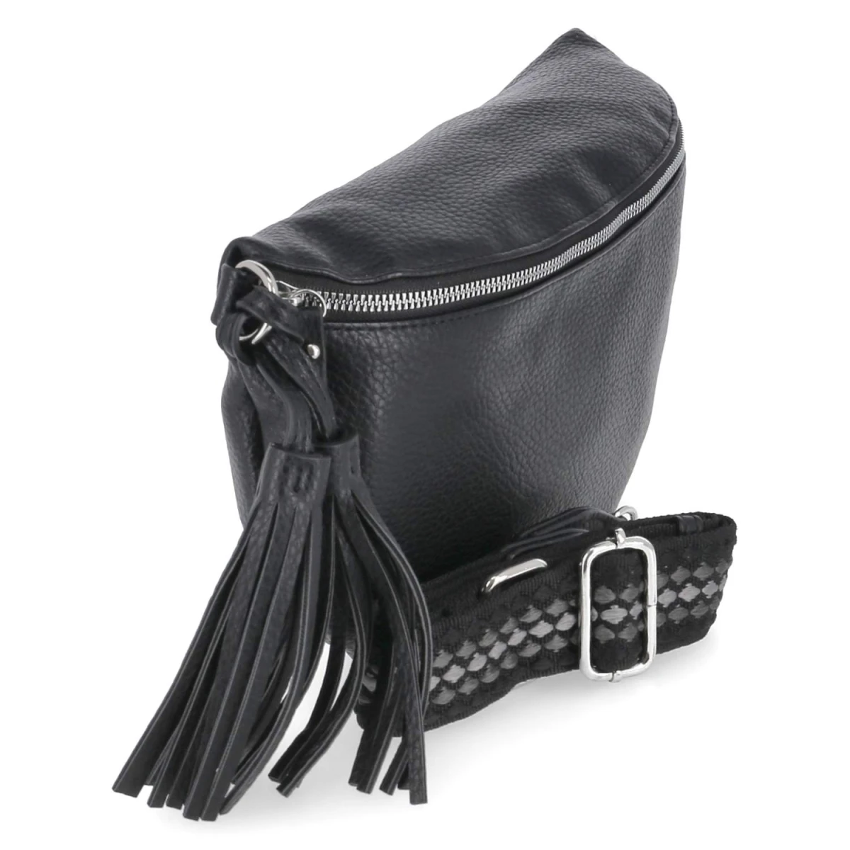 Reduziertes Design trifft auf durchdachte Innenaufteilung: Die schwarze Umhängetasche zeigt eine zeitlose Silhouette, die durch den Quasten-Anhänger subtil belebt wird. Mit ca. 17 x 33 x 9 cm und einem Volumen von etwa 3 Litern bietet sie genügend Raum für die täglichen Begleiter. Das Reißverschlusshauptfach schützt zuverlässig, innen unterstützen ein Zipperfach und ein Steckfach die Übersicht. Der abnehmbare, verstellbare Schultergurt von ca. 130 cm Länge erlaubt Crossbody- oder Schulter-Tragevarianten. Die glatte, wertige Anmutung fügt sich mühelos in verschiedenste Looks. Modetipp: Für ein lässig-elegantes Update die Tasche zu einem feinen Strickpullover, satinierter Midi-Skirt und minimalistischen Sneakers stylen; die Quaste als Blickfang durch eine schmale Gürtelmetallik betonen.