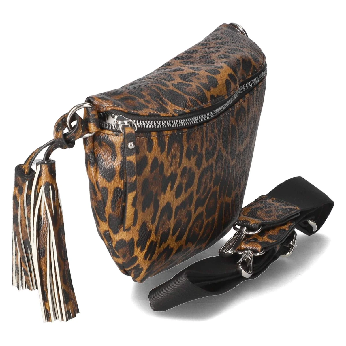Ein Eyecatcher mit praktischem Kern: Die Damen-Umhängetasche in Braun zeigt ein ausdrucksstarkes Leopardmuster und überzeugt mit klarem Aufbau. Mit ca. 17 x 33 x 9 cm und einem Volumen von rund 5 Litern bietet sie ausreichend Platz, während das Reißverschlusshauptfach Sicherheit gibt. Innen organisieren ein Reißverschlussfach und ein Steckfach, hinten erleichtert ein zusätzliches Reißverschlussfach den schnellen Zugriff. Der abnehmbare, in der Länge verstellbare Schulterriemen (ca. 130 cm) sorgt für variable Tragemöglichkeiten. Silberfarbenes Markenlogo und Fransenanhänger setzen glänzende, bewegte Akzente. Modetipp: Für den Abend zu einem schlichten Satinkleid und zarten Riemensandalen tragen - so steht der Animal Print im Mittelpunkt und verleiht dem Look elegante Spannung.