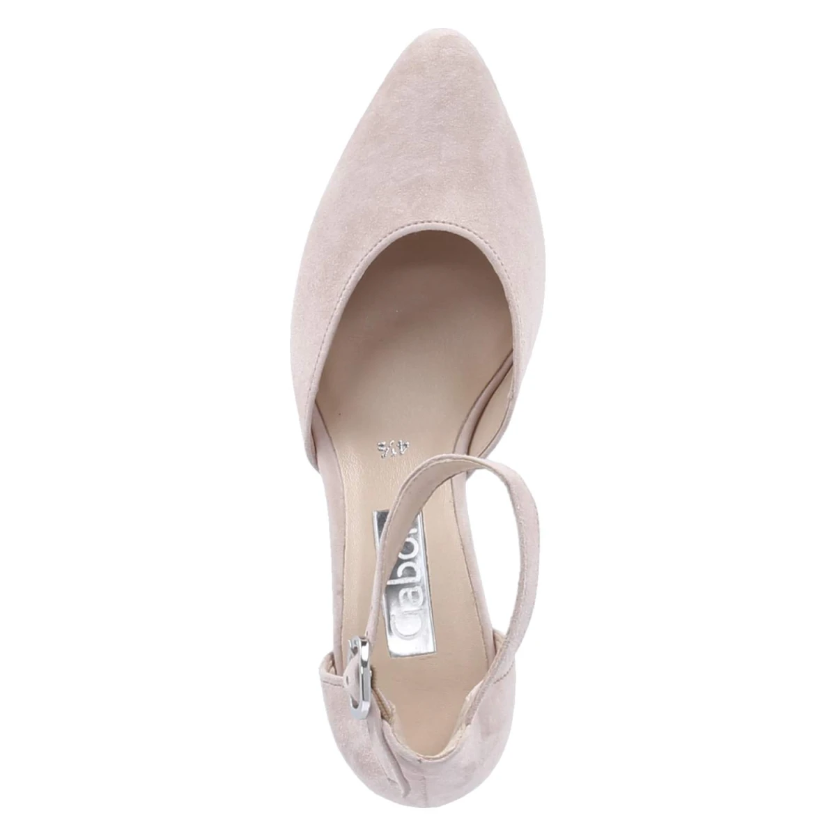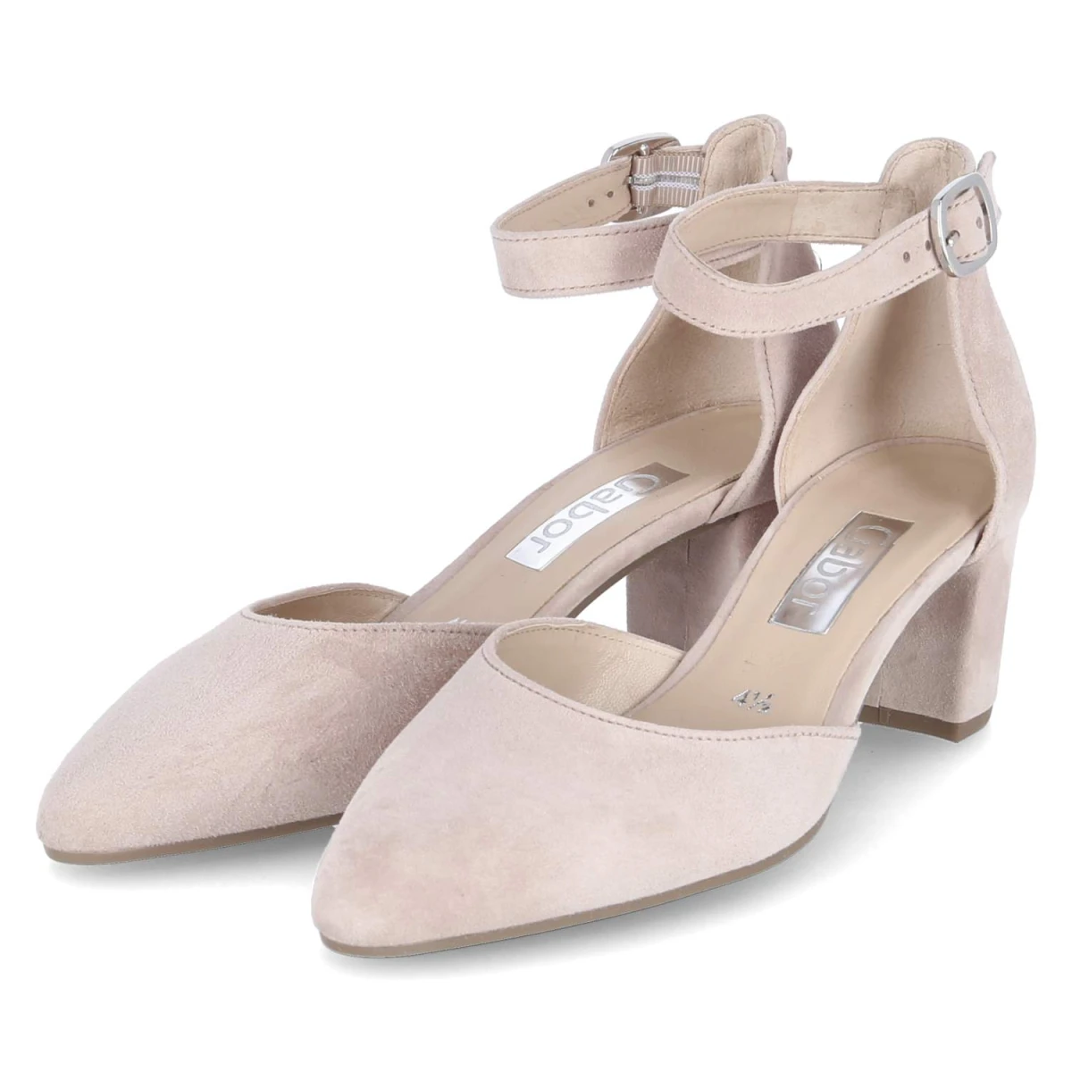 Feine Linien und smarte Details prägen diesen Gabor Spangenpumps. Das D’Orsay-Design setzt den Knöchel in Szene, während die spitz zulaufende Vorderpartie eine elegante Länge erzeugt. Samtig schimmerndes Rauleder in Rosa trifft auf einen stabilen Blockabsatz von etwa 6 cm, der komfortables Stehen ermöglicht. Lederfutter und eine leicht gepolsterte Lederdecksohle umhüllen den Fuß angenehm, die verstärkte Ferse stabilisiert unauffällig. Die flexible, rutschhemmende Laufsohle unterstützt bei jedem Schritt, der verstellbare Riemen mit Elastikeinsatz sorgt für passgenauen Halt. Durch die harmonische Farbgebung ergeben sich zahlreiche Outfits. Modetipp: Mit Seidenbluse und verkürzter, weit fallender Anzughose entsteht müheloser City-Chic.