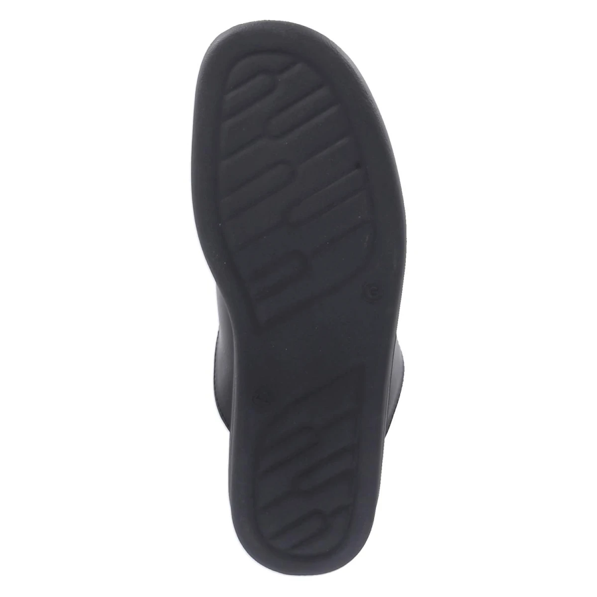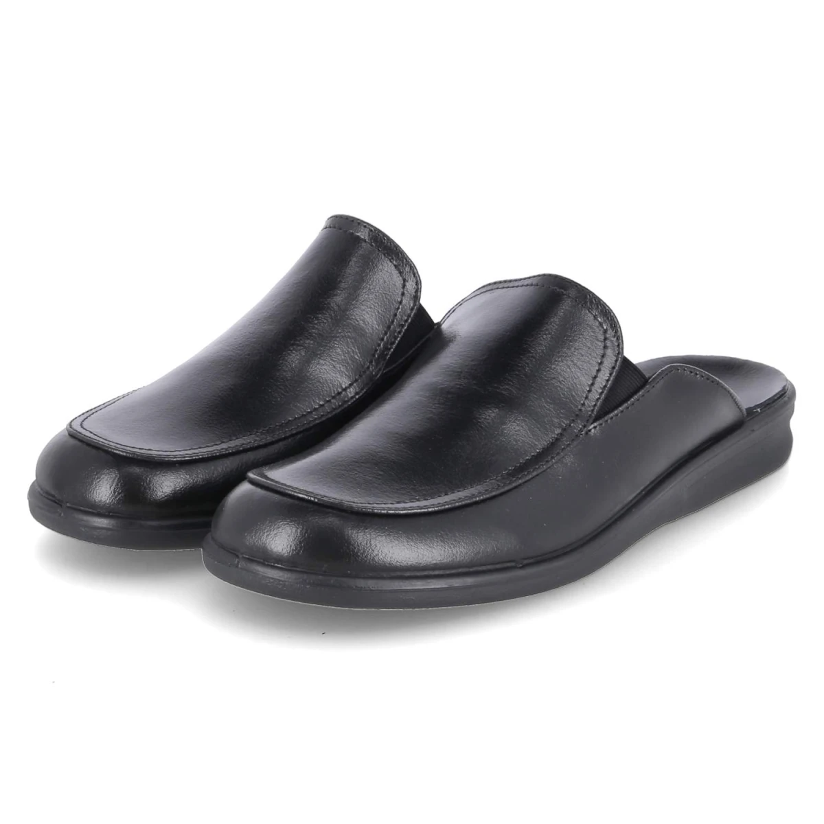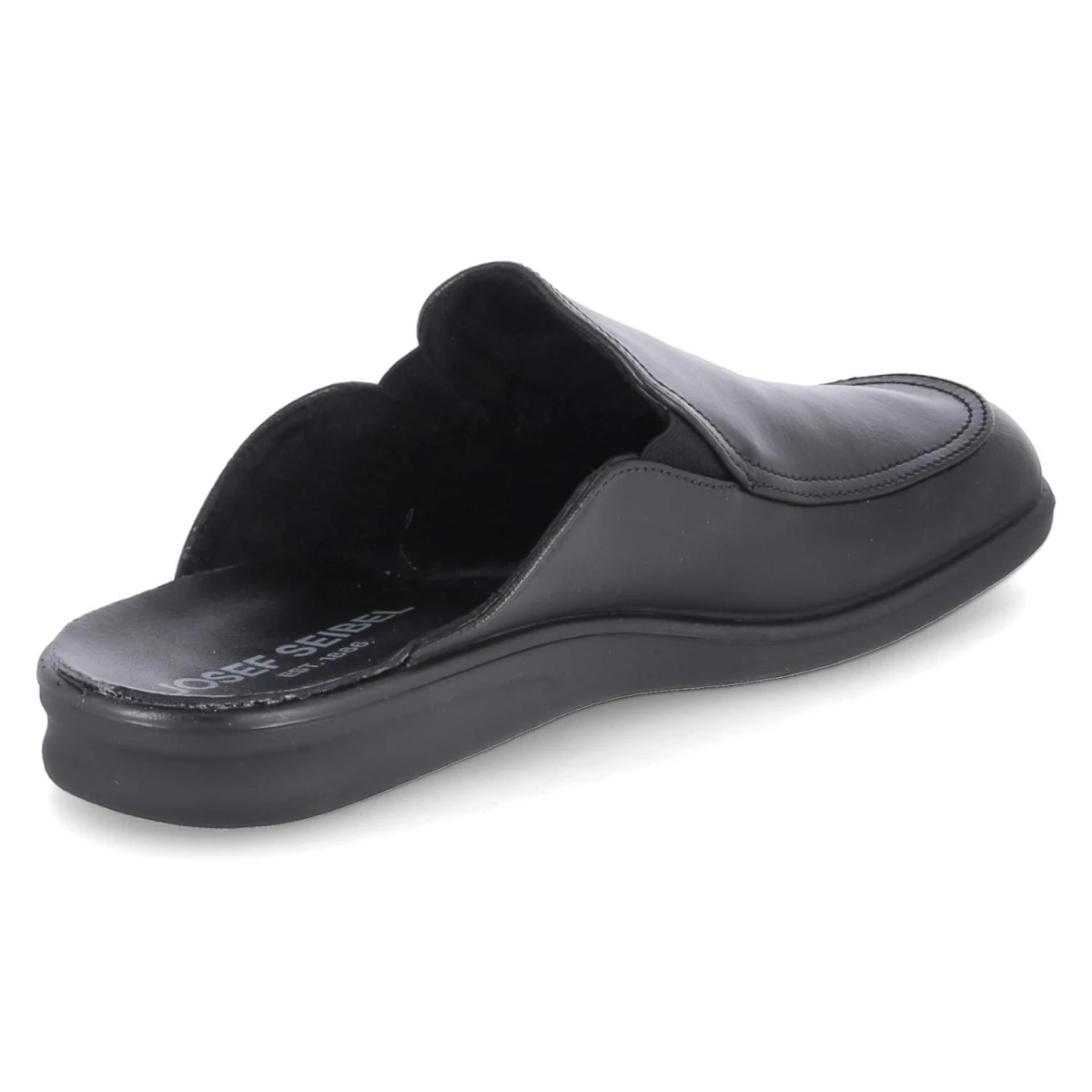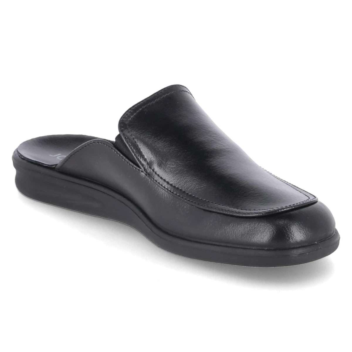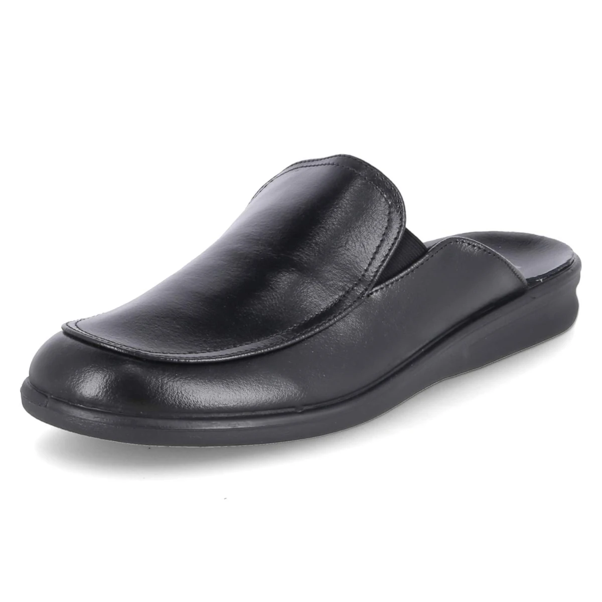Zeitlos und praktisch: Der BELFORT 20 von Josef Seibel überzeugt als schwarzer Hausschuh aus glattem Echtleder mit runder Spitze und komfortablen Elastikeinsätzen auf Höhe des Spanns. Ohne Verschluss gestaltet, gelingt das Hineinschlüpfen mühelos. Die Leder-Textil-Decksohle sorgt für angenehmes Tragegefühl, während die flexible, griffige Laufsohle auf Parkett oder Fliesen zuverlässigen Halt gibt. Das langlebige Leder und das klassische Design machen das Modell zum Favoriten für viele Saisons. Da die Passform kleiner ausfällt, bewährt sich die Wahl von zwei Nummern größer. Modetipp: Mit einer strukturierten Loungehose in Grau und einem grob gestrickten Pullover entsteht ein stimmiger, hochwertiger Home-Office-Style.