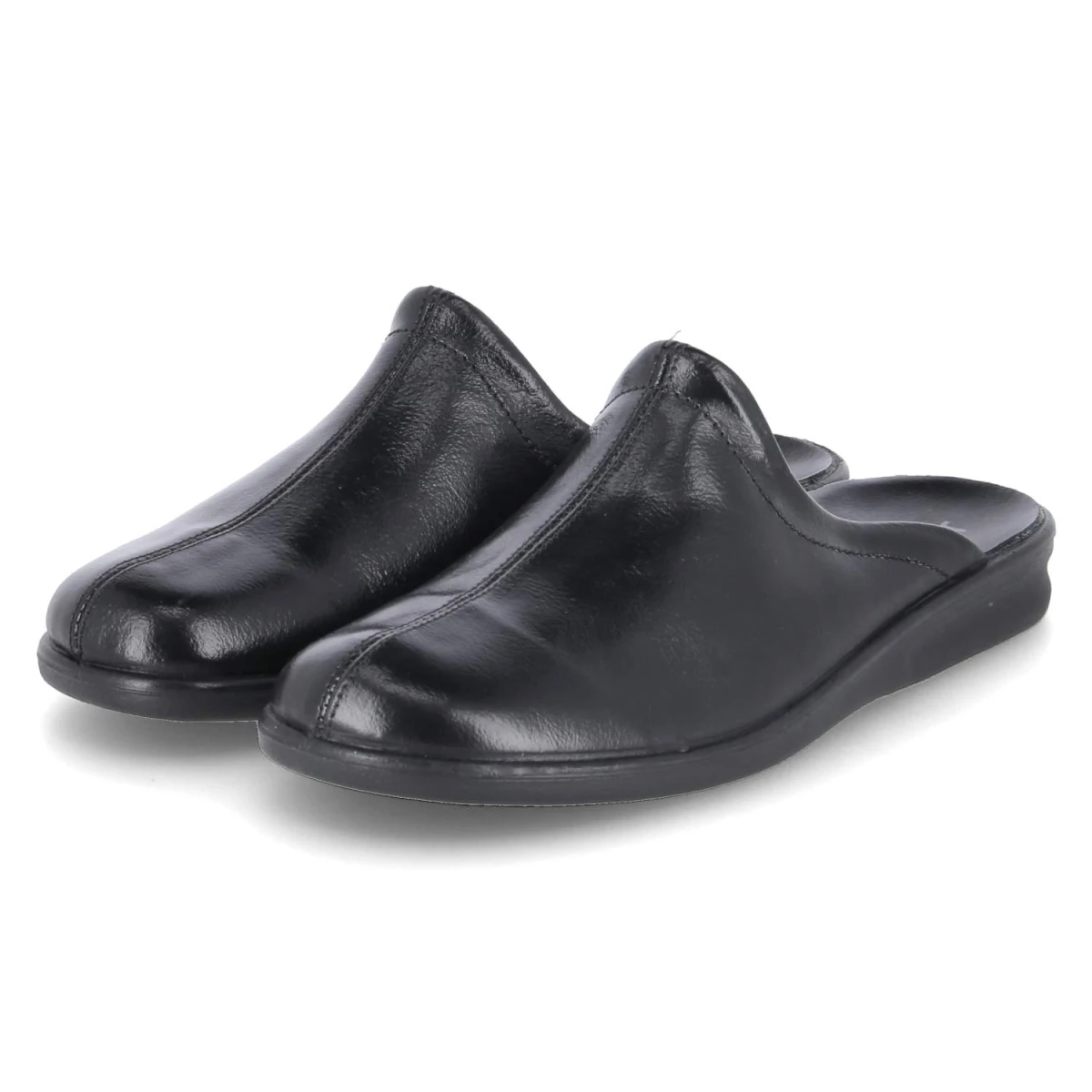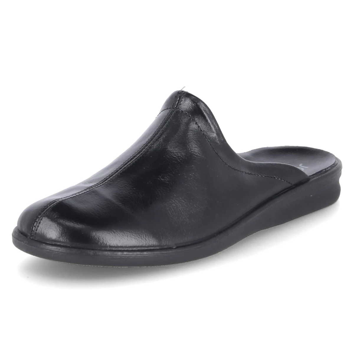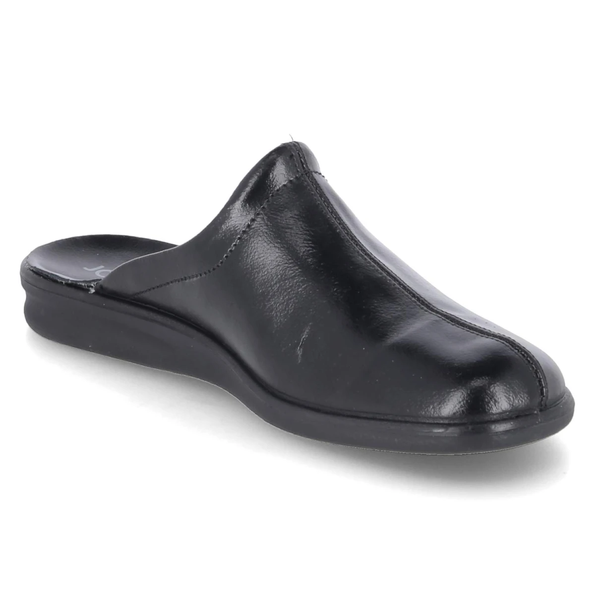 Zeitlose Ruhe für zuhause: Die Hausschuhe BELFORT 450 von Josef Seibel überzeugen mit klassischem Design in Schwarz und langlebigem Glattleder. Die runde Schuhspitze verleiht ein ausgewogenes Profil, die flexible Sohle unterstützt sanft abrollende Schritte. Innen sorgt eine Decksohle aus Leder-Textil gemeinsam mit dem dezent vorgeformten Fußbett für angenehmen Komfort bei täglichem Tragen. Ohne Verschluss gestaltet, sind die Pantoffeln schnell an- und ausgezogen und lassen sich dank ihrer schlichten Form mühelos stylen. Durch das reduzierte Erscheinungsbild bestehen vielfältige Kombinationsmöglichkeiten von Strick bis Baumwoll-Twill. Hinweis: fällt kleiner aus; eine Nummer größer bestellen. Modetipp: Mit dunkelblauer Strickhose und schwarzem Crewneck-Sweater tragen, Ton-in-Ton-Socken runden den hochwertigen Look ab.