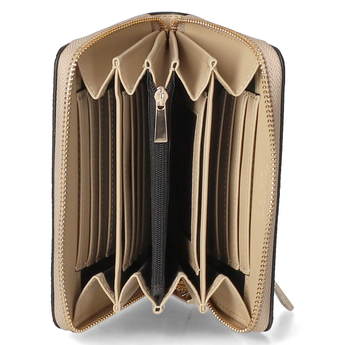 Die elegante Geldbörse in softem Beige präsentiert ein harmonisches Zusammenspiel aus Funktion und Stil. Goldglänzende Highlights betonen das klare Design, während der sichere Reißverschluss den Inhalt zuverlässig schützt. Das handliche Maß von ca. 10 x 15 x 3 cm passt in nahezu jede Tasche. Innen strukturiert sich alles wie von selbst: 13 Kartenfächer sorgen für Ordnung, das Reißverschlussmünzfach hält Münzen sicher, und das Reißverschluss-Hauptfach organisiert Scheine und Belege. Ein zusätzliches Reißverschluss-Außenfach ermöglicht schnellen Zugriff auf Fahrkarten oder Schlüsselkarte. Die glatte Haptik und saubere Kantenverarbeitung unterstreichen den hochwertigen Look. Modetipp: Zu einem cremefarbenen Strickkleid, kniehohen Stiefeln und einem Trenchcoat tragen - goldene Creolen greifen die Akzente stilvoll auf.