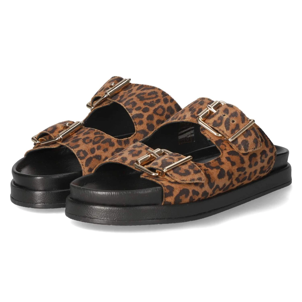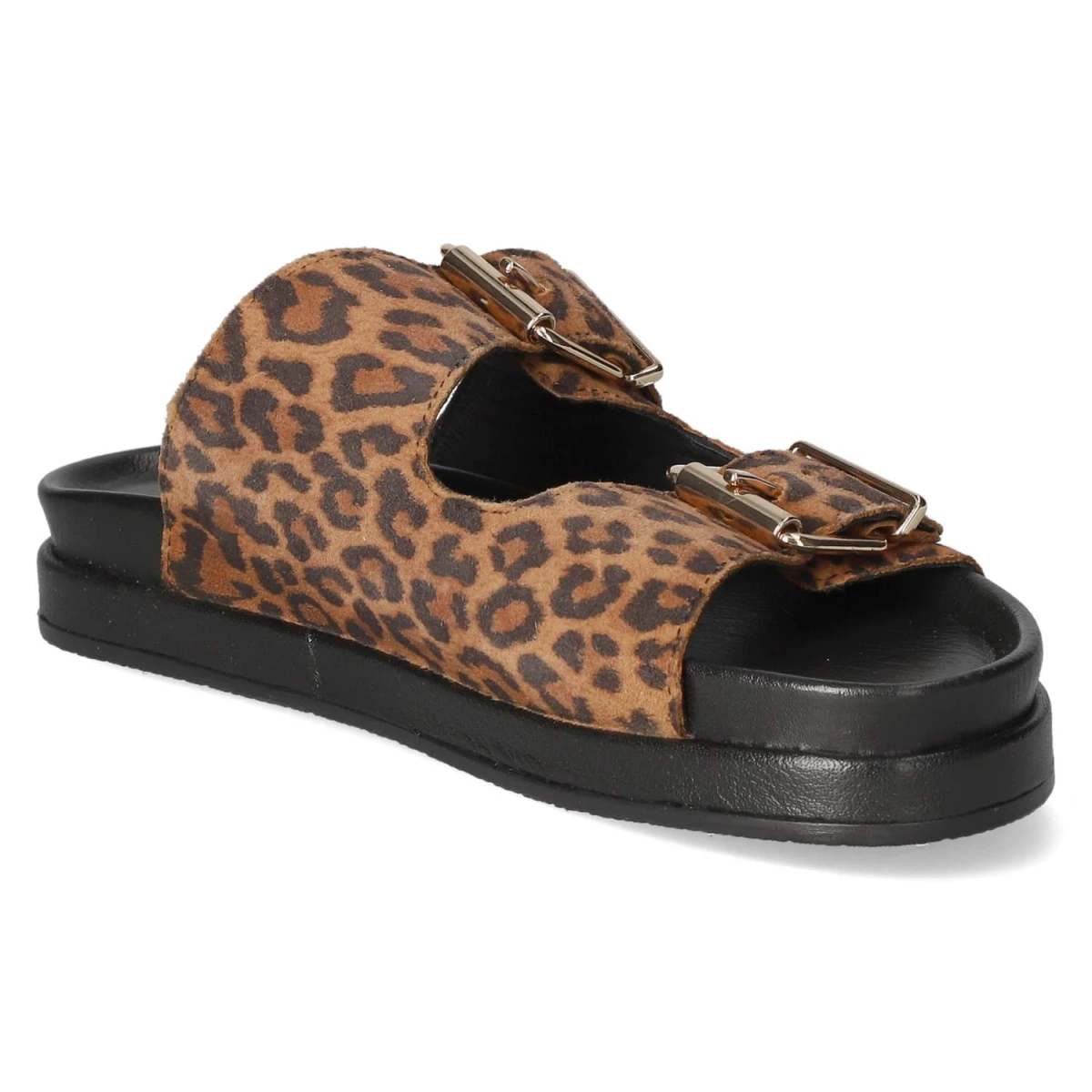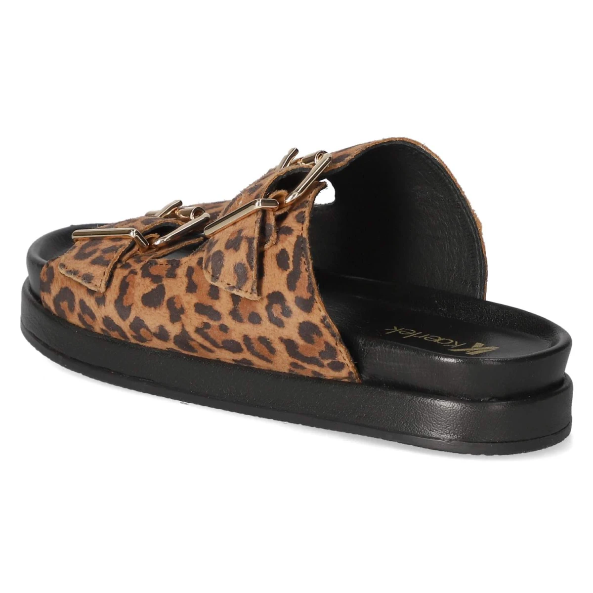 Mit ihrer eleganten Linienführung und dem charaktervollen Animal-Print vereinen die Pantoletten von Kaerlek moderne Ästhetik und Komfort. Beige Rauleder aus langlebigem Echtleder bildet die Basis, die hautfreundliche Lederdecksohle schmiegt sich angenehm an den Fuß. Die offene Schuhspitze sorgt für ein sommerliches Tragegefühl, während die verstellbare Schnalle die Passform präzise reguliert. Eine flexible, rutschhemmende Laufsohle unterstützt einen sicheren Auftritt vom Kopfsteinpflaster bis zur Galerie. Das fein nuancierte Leopardmuster verleiht dem Design Tiefe und macht die edle Optik vielseitig kombinierbar. Modetipp: Mit einem fließenden Midi-Kleid in Erdtönen und einer strukturierten Basttasche entsteht ein lässig-femininer Look, der den Print als edles Statement wirken lässt.