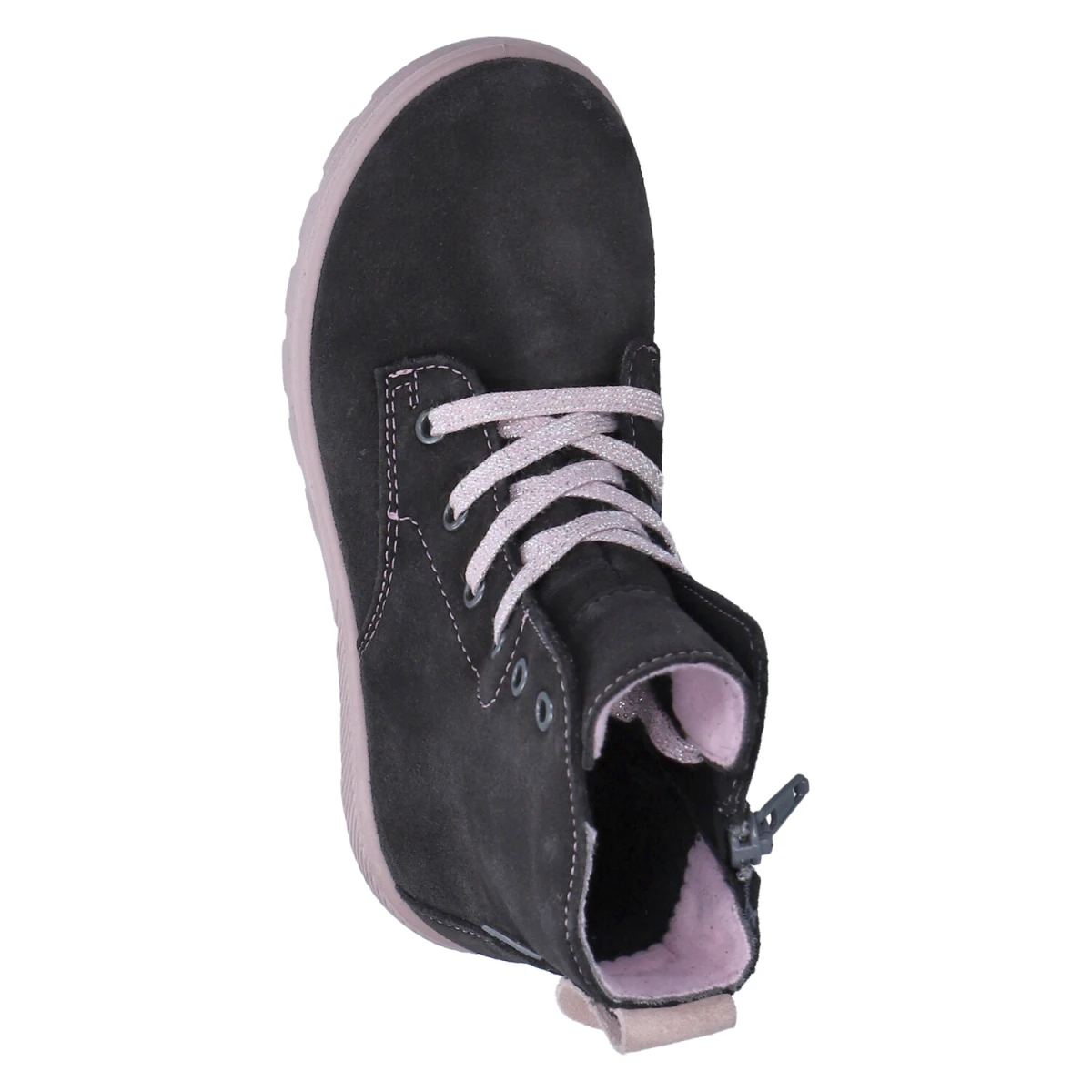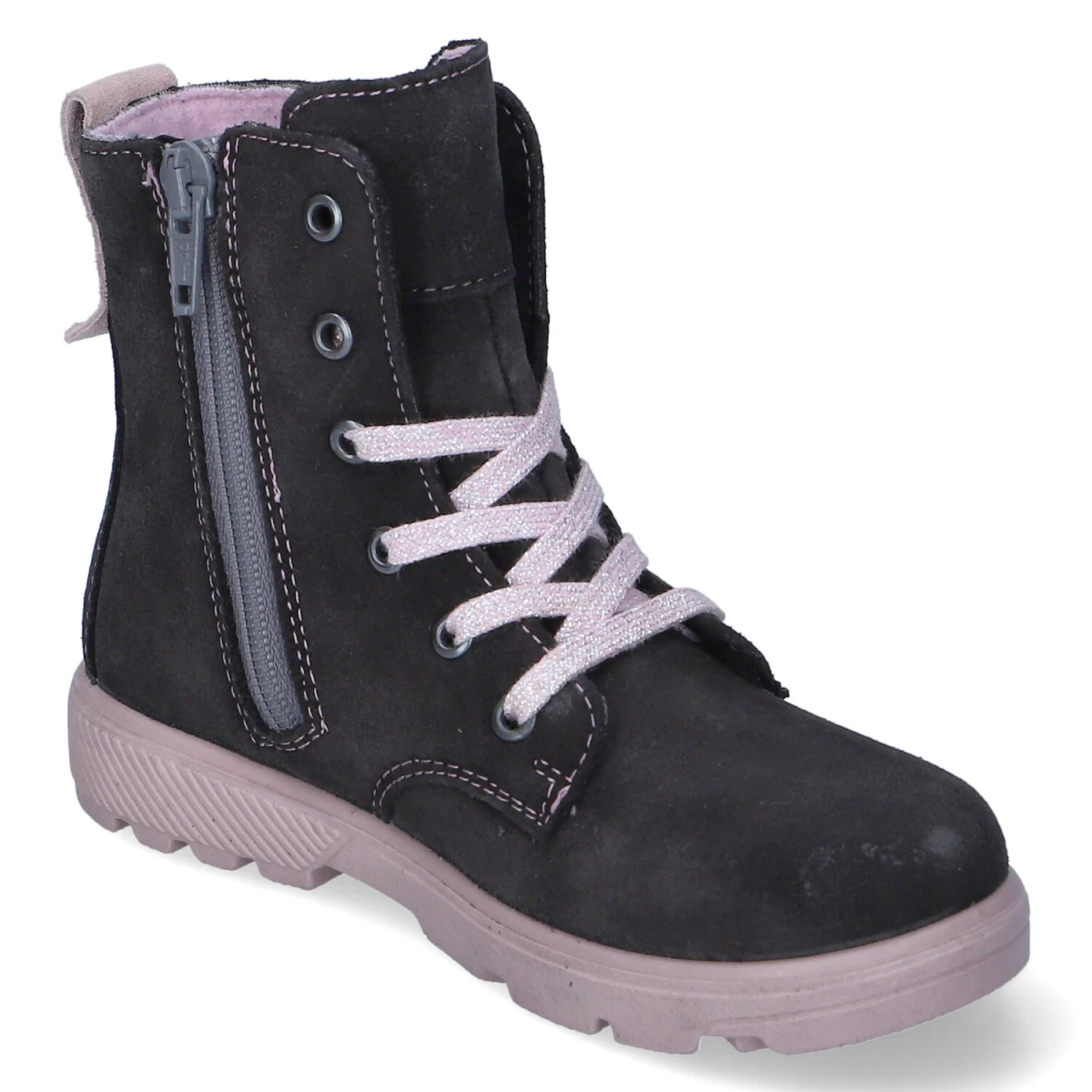 Ricosta ANNI verbindet Funktionalität mit kindgerechter Leichtigkeit. Das Obermaterial aus grauem Rauleder wird durch rosafarbene Akzente belebt, während RicostaTEX verlässlichen Schutz vor Nässe bei gleichzeitiger Atmungsaktivität bietet. Das leichte Fleecefutter wärmt sanft und schafft ein ausgeglichenes Fußklima. Eine runde Schuhspitze fördert natürliche Zehenbewegung, der verstärkte Fersenbereich gibt Halt, und der weich gepolsterte Einstieg schmiegt sich angenehm an. Die Kombination aus Schnürung und Reißverschluss macht das Handling komfortabel und ermöglicht einen präzisen Sitz. Die gepolsterte, herausnehmbare Decksohle sowie die flexible, rutschhemmende Profilsohle unterstützen sicheren Tritt auf unterschiedlichsten Untergründen. Normal ausfallende Passform und Anziehlasche runden das durchdachte Design ab. Modetipp: Mit Cordrock, gerippter Strumpfhose und Steppweste entsteht ein lässig-warmes Herbstensemble.