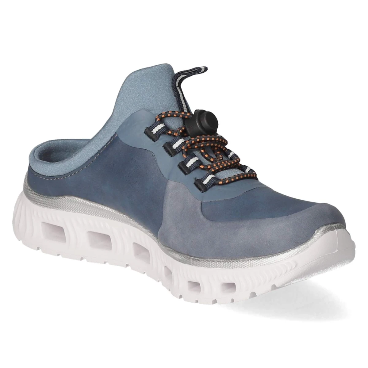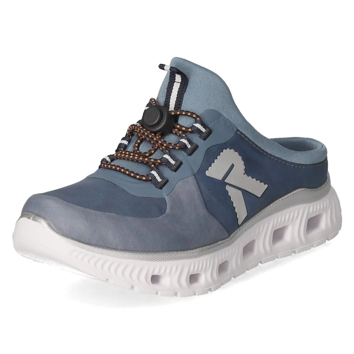 Diese blauen Rieker-Pantoletten überzeugen als vielseitige Begleiter für warme Tage. Der leichte Textil-Synthetik-Mix schmiegt sich angenehm an, die runde Schuhspitze unterstreicht den entspannten Charakter. Für dauerhaften Wohlfühlfaktor sorgt die beste Memory-Foam-Fußbettung, die federnde Entlastung bei jedem Schritt bietet. Ein Elastikband mit Schnellverschluss fixiert den Fuß komfortabel und spart Zeit beim Anziehen. Reflektierende Details geben dem sportlichen Design eine moderne Note und verbessern die Sichtbarkeit. Die flexible, rutschhemmende Laufsohle unterstützt einen sicheren Gang auf Asphalt wie auf glatten Böden. Mit Textildecksohle und normaler Passform entsteht unkomplizierte Alltagstauglichkeit. Modetipp: Zu einer Culotte in Creme und einem leichten Stricktop entsteht ein eleganter Sommer-Look, den eine Crossbody-Bag in Kontrastfarbe modisch akzentuiert.