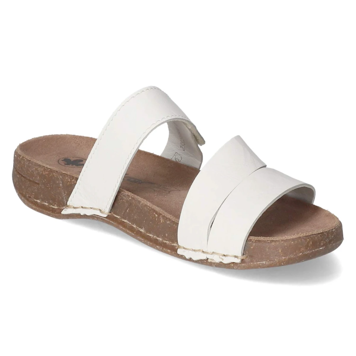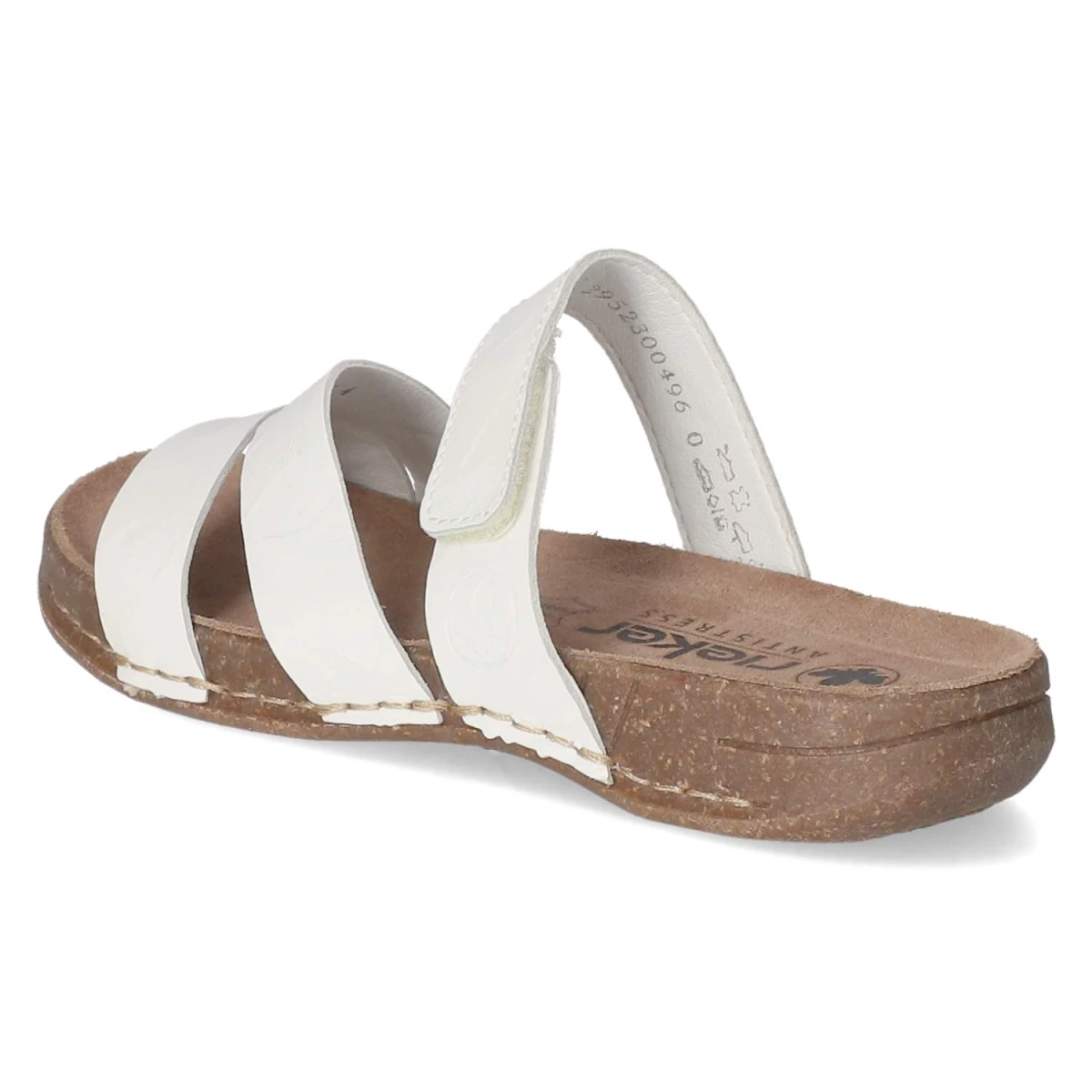 Schlicht, funktional und feminin zeigen sich diese Damen-Pantoletten von Rieker in strahlendem Weiß. Das Obermaterial aus robustem Glattleder und die Lederdecksohle versprechen ein wertiges Tragegefühl, das durch das weich gepolsterte Fußbett abgerundet wird. Der bequeme Klettverschluss lässt sich schnell justieren und schmiegt sich an, ohne einzuengen. Dank offener Schuhspitze bleibt es luftig, während die flexible, rutschhemmende Laufsohle ein geschmeidiges Abrollen begünstigt. So entstehen Komfort und Halt im Alltag, auf Reisen oder beim Wochenendbummel. Dezente Logoakzente setzen einen Hinweis auf die Marke, ohne vom puren Design abzulenken. Die Passform fällt normal aus und unterstützt unkomplizierte Outfit-Kombinationen. Modetipp: Mit cropped Jeans und Oversize-Hemd kombiniert, dazu goldene Creolen, entsteht ein cleaner, urbaner Look.