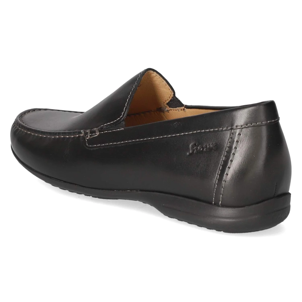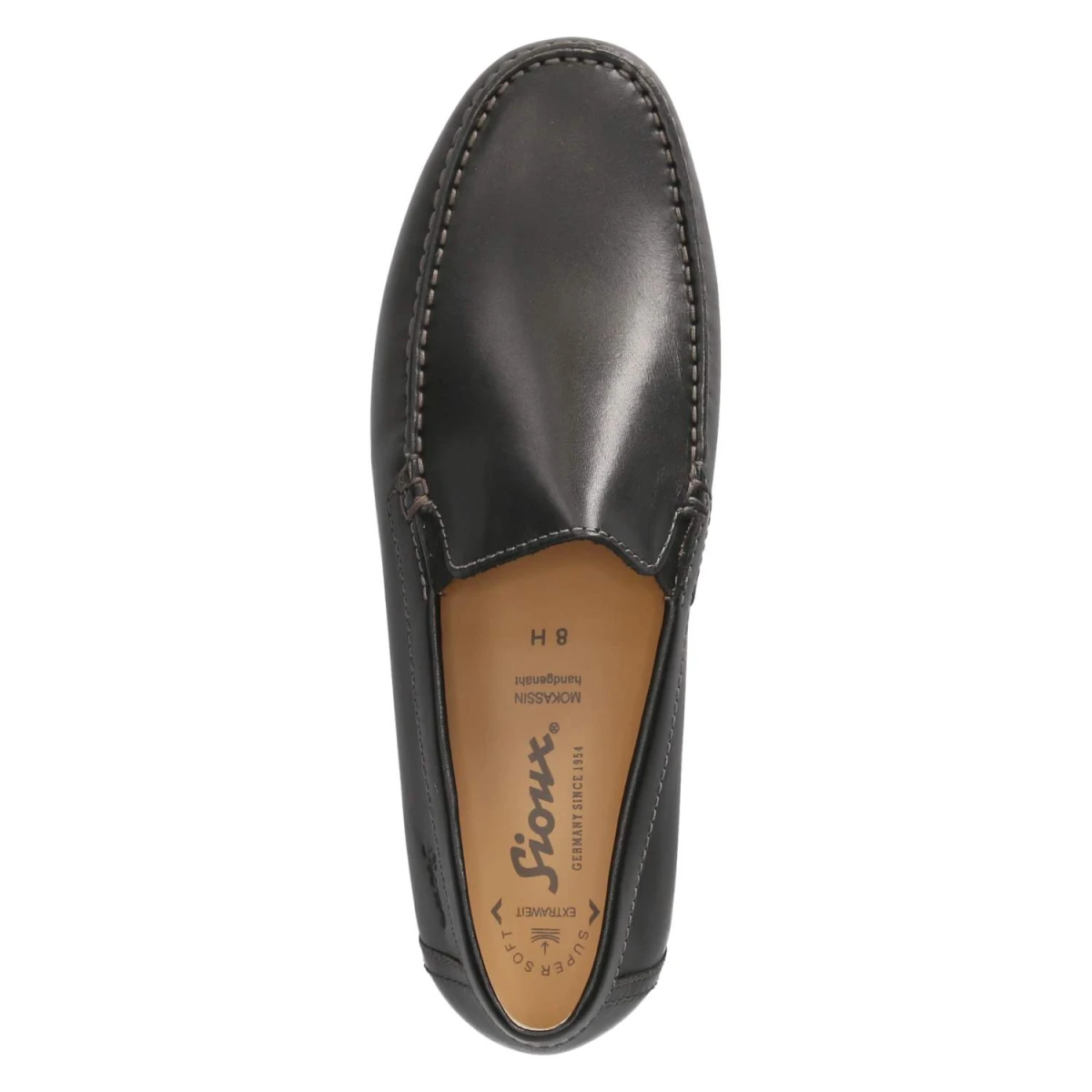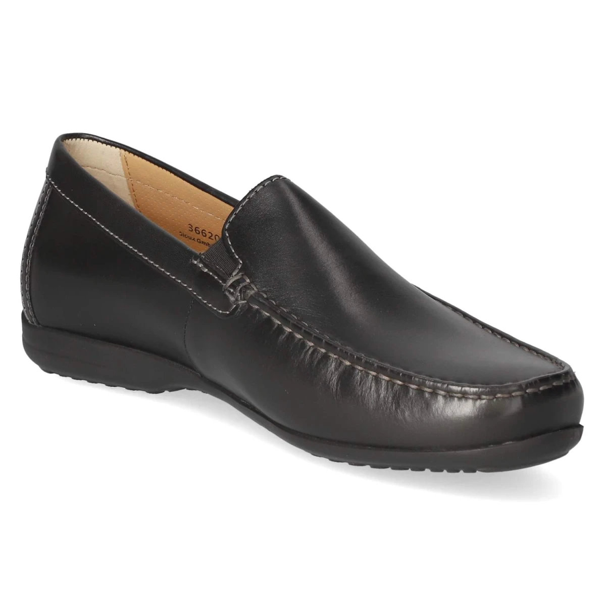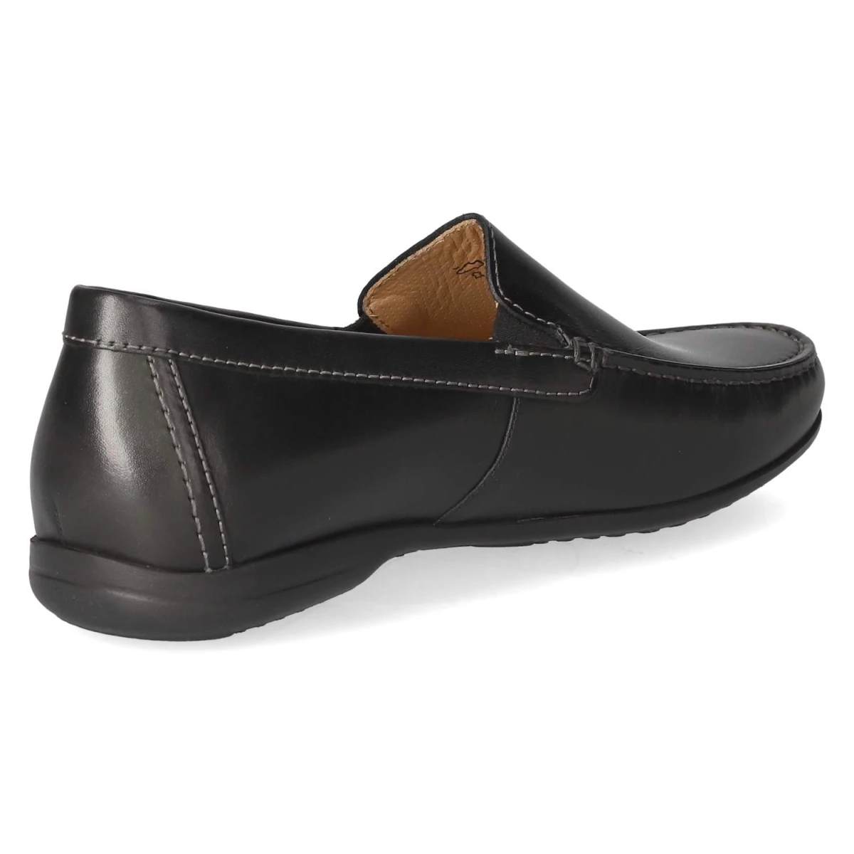 Als zuverlässiger Begleiter für Business und Freizeit zeigt sich der Herren-Mokassin GION von Sioux in tiefem Schwarz. Das Obermaterial aus strapazierfähigem Glattleder unterstreicht das elegante Design, während die runde Spitze und die sorgfältig gearbeitete Wulstnaht dem Klassiker Profil geben. Zwei kleine Elastikeinsätze an den Seiten lassen den Einstieg gelingen, ohne auf einen Verschluss angewiesen zu sein. Innen punktet der Schuh mit gepolsterter Lederdecksohle und einem komfortablen Wechselfußbett, das sich schnell austauschen lässt. Die verstärkte Fersenpartie bietet Halt, die profilierte, rutschhemmende Laufsohle sorgt für Trittsicherheit auf dem Weg ins Meeting oder beim Stadtbummel. Mit regulärer Passform eignet sich das Modell für Erwachsene, die Wert auf Qualität und Komfort legen. Modetipp: In Kombination mit grauem Anzug, feinen Socken und einem Mantel in Kamelton wird der Look smart und modern.