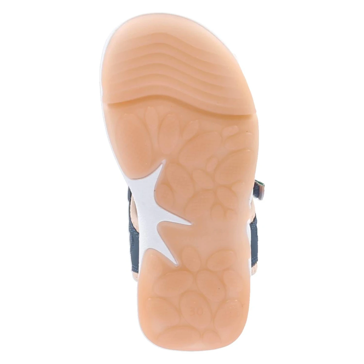 PEBBLES von Superfit interpretiert die klassische Kindersandale modern: Ein harmonischer Farbverlauf auf zwei Klettverschlüssen trifft auf ein klares Blau und einen Material-Mix aus Textil und Synthetik. Das fußfreundliche Tragegefühl entsteht durch eine weiche Textildecksohle, die gemeinsam mit der flexiblen, griffigen Laufsohle Komfort und Standfestigkeit schafft. Die offene Spitze unterstützt ein luftiges Klima, während die Klettverschlüsse eine schnelle, stufenlose Weitenregulierung erlauben. In Weite M konstruiert und mit normal ausfallender Passform, gelingt die Größenauswahl unkompliziert. Ob Spielstraße oder Park, die Sandale begleitet aktiv und leicht. Modetipp: Mit Leinen-Shorts und einem Shirt mit feinen Streifen kombinieren; kleine Farbakzente in Rosa, Gelb oder Mint nehmen den Regenbogen auf und runden den Look ab.